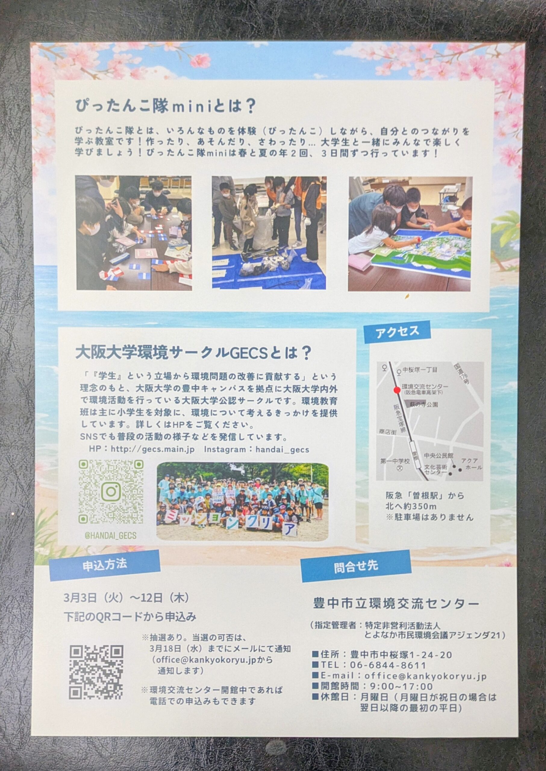 -豊中市-【環境交流センター】環境を楽しく学ぶ「ぴったんこ隊mini」 今回は海をテーマに全3回開催 大阪大学環境サークルGECS環境教育班共催
