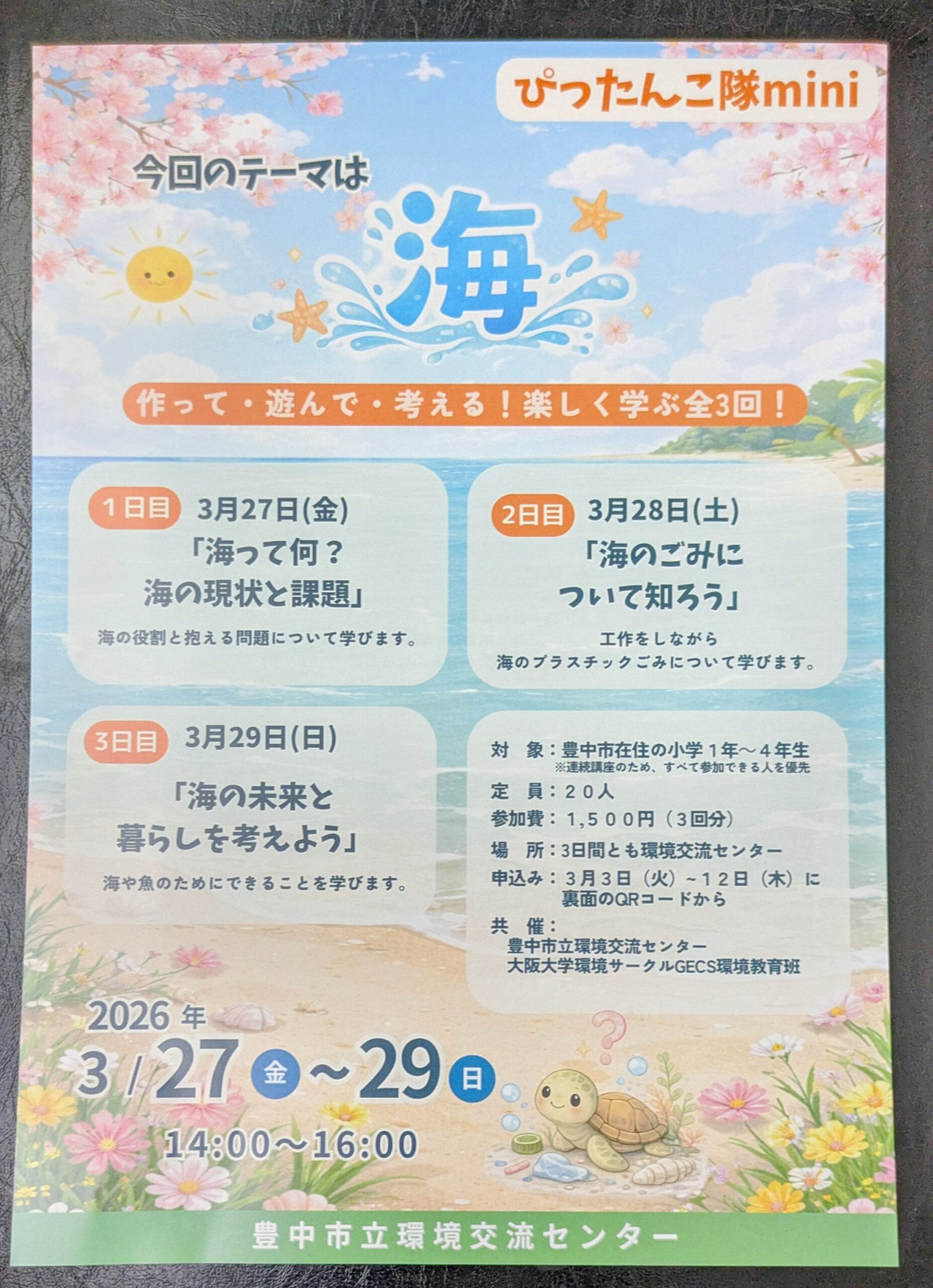 -豊中市-【環境交流センター】環境を楽しく学ぶ「ぴったんこ隊mini」 今回は海をテーマに全3回開催 大阪大学環境サークルGECS環境教育班共催