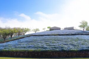『こうべアグリパークネモフィラの丘 2026』は、約100万輪のネモフィラが敷地いっぱいに咲き誇る春の一大イベント。ネモフィラが見頃を迎える 4 月~5 月にあわせて開催し、丘一面を青く染め上げるネモフィラと、青く澄み渡った空のハーモニーは、写真に収めたくなる大パノラマだ。園内は小高い丘のような立地になっており、頂上からは神戸の山々を見渡すことができる。園内には、ネモフィラの丘以外にも地元食材を使用したレストランやバーベキュー場、陶芸館などの施設も併設されており、大人から子どもまで老若男女問わず楽しめるコンテンツが用意されている。