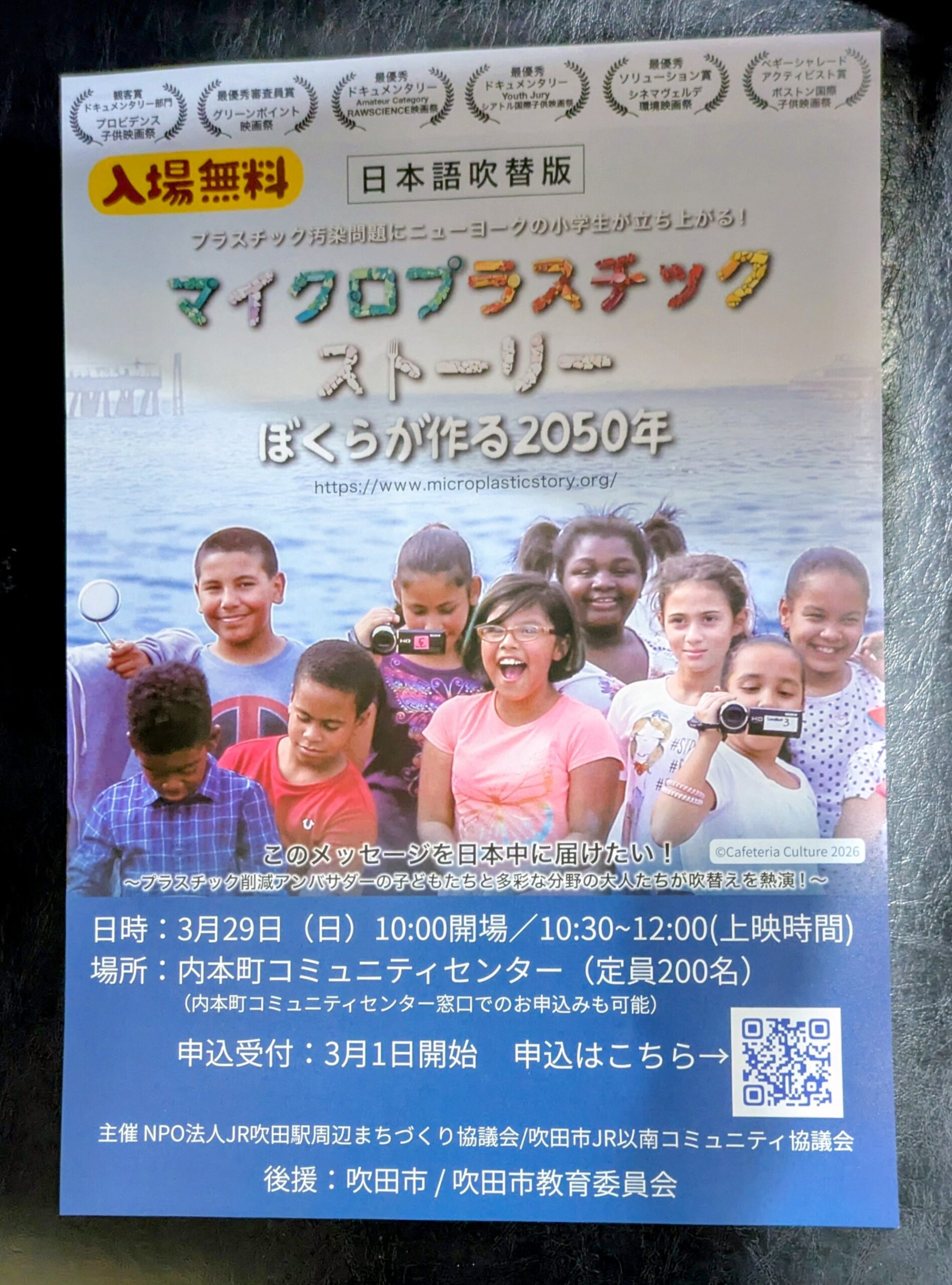 -吹田市-【内本町コミュニティセンター】で「マイクロプラスチック・ストーリー ぼくらが作る2050年」上映 3月29日(日)