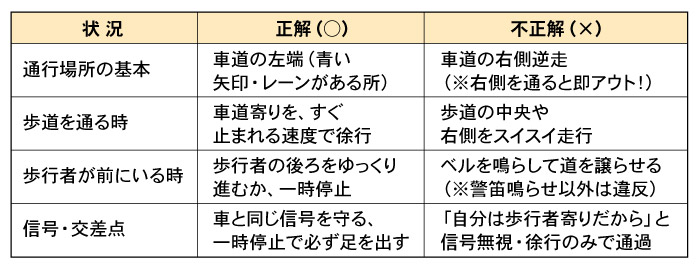 一方、歩道を通行できるのは、青い円形に「人と自転車」が描かれた標識がある場合に限られます。ただし、歩道はあくまで歩行者が優先であり、自転車は車道寄りを「徐行(すぐに止まれる速度)」することが義務づけられています。ベルを鳴らして歩行者に道を譲らせる行為や、歩行者の妨げになるようなスピード走行は「通行方法違反」として取り締まりの対象になり得るため、十分な注意が必要です。