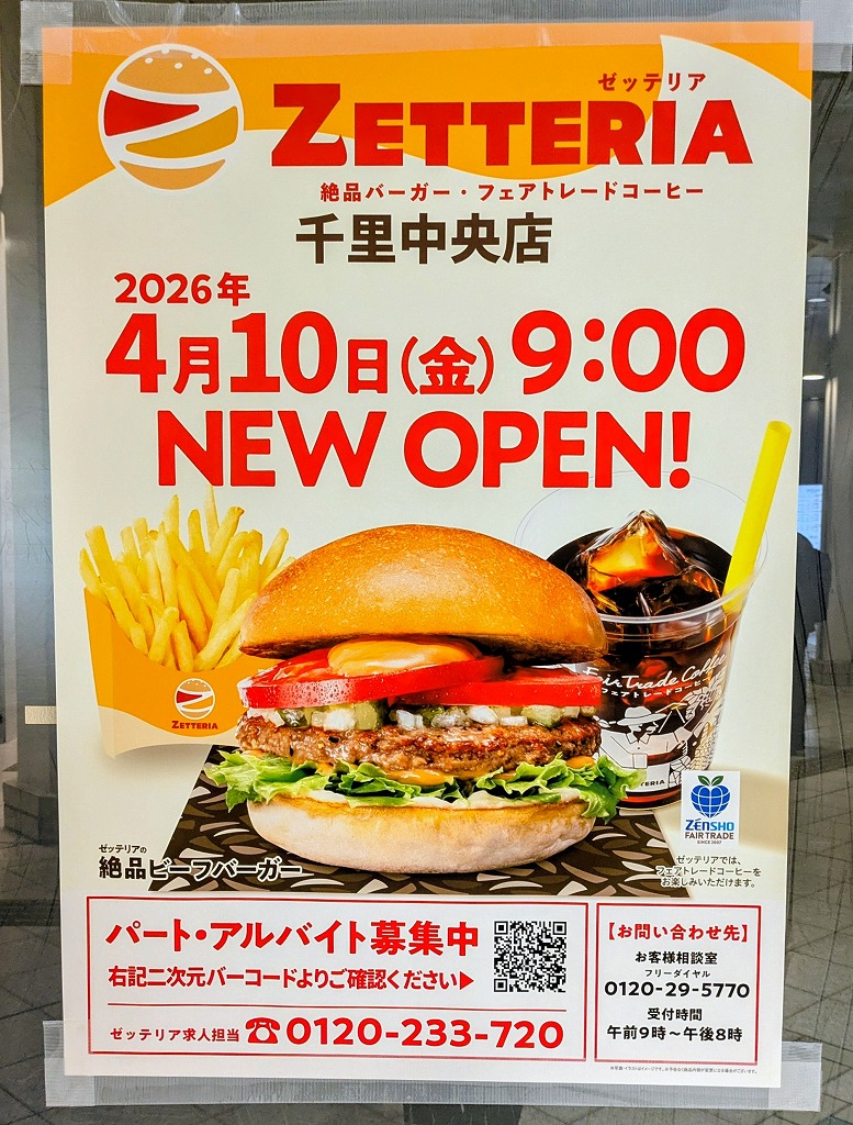 -豊中市-せんちゅうパル「ロッテリア」のあとの「ZETTERIA(ゼッテリア)」は4月10日(金)オープン予定です