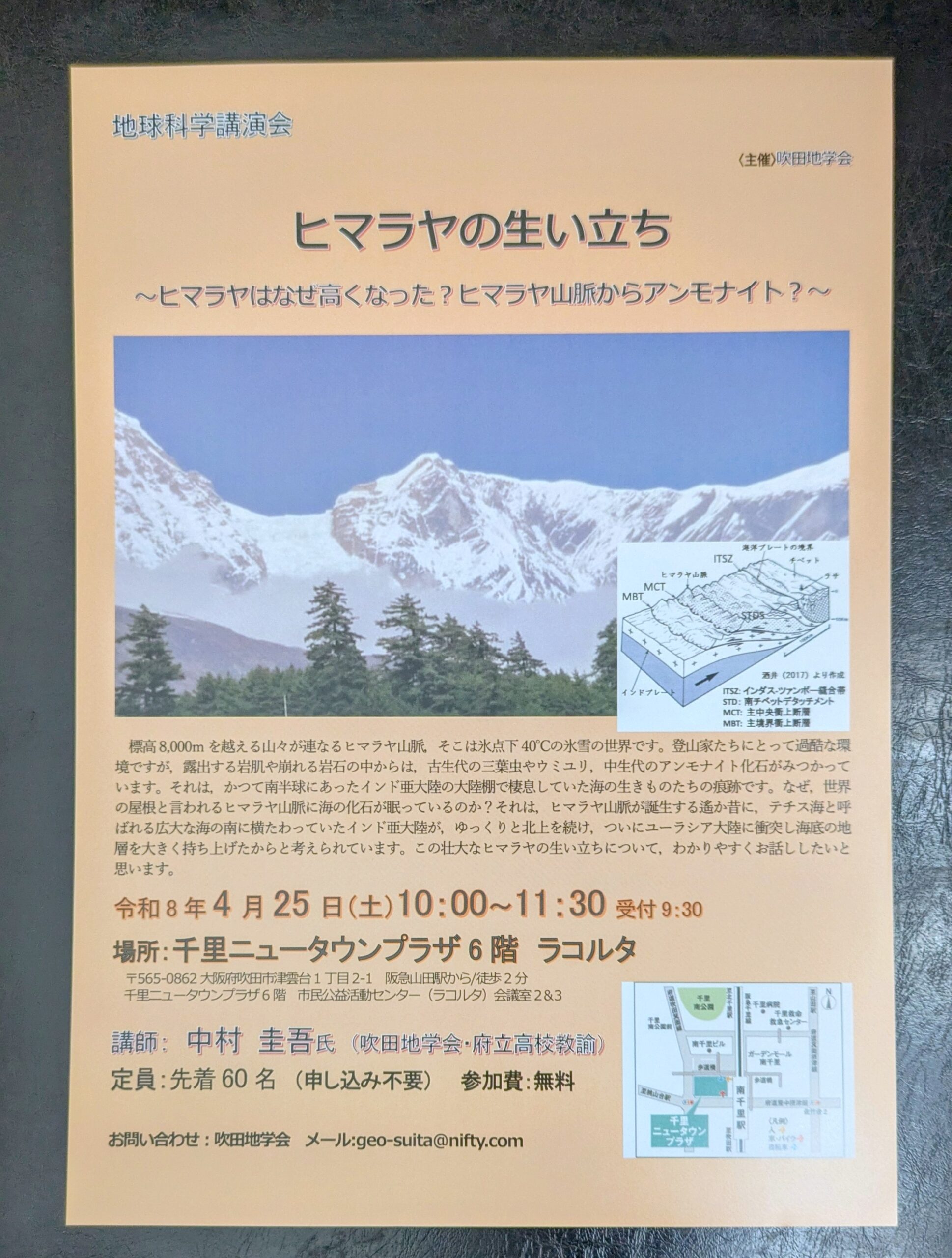 -吹田市-【ラコルタ】で地球科学講演会「ヒマラヤの生い立ち」開催 4月25日(土)