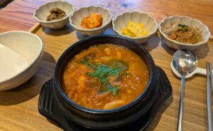 なんと、小鉢はおかわり出来ます。「蓮根の甘辛煮」「キムチ」「玉子焼き」「チャプチェ」でどれも美味しかったのですが、「蓮根」と「チャプチェ」は、お腹いっぱいでもおかわりするぐらい美味しかったです。キムチチゲはチゲに使うキムチで一番美味しいとされる熟成キムチで作られているので旨みが際立ちました☆