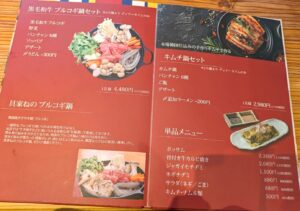 「黒毛和牛プルコギ鍋セット/4480円」「キムチ鍋セット/2980円」「単品メニュー/500円~」