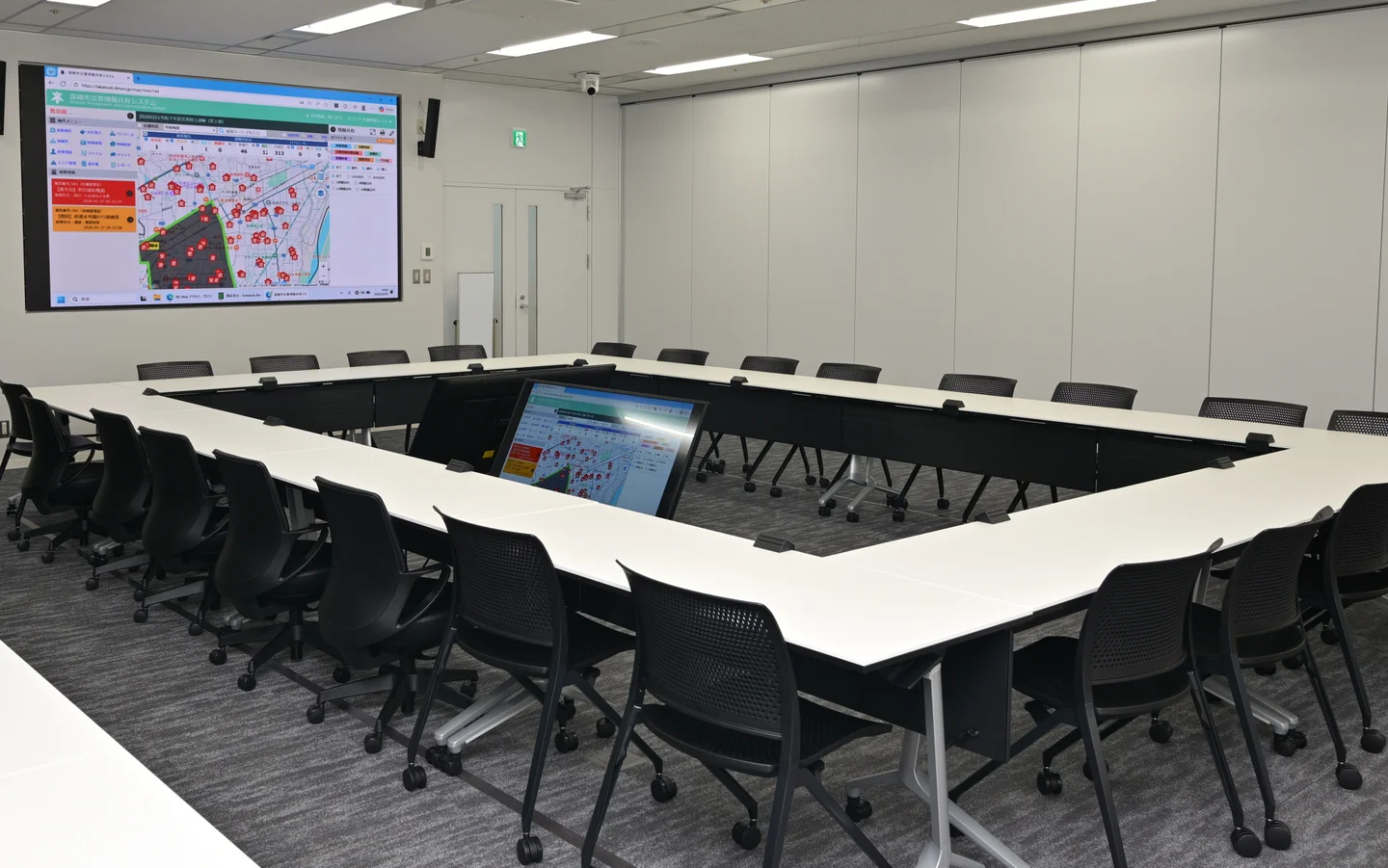 ・災害対策部室(オペレーションルーム):決定事項に基づき、応急対応や情報発信、被災者支援の調整を行う。